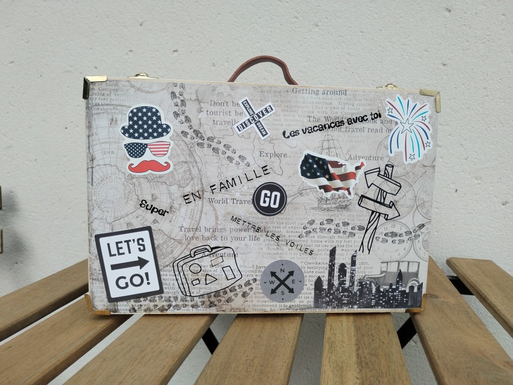 Un cadeau d’anniversaire surprise. Une urne pour un futur voyage à New York. Voilà la commande qui m’a été passé pour cette urne-cadeau. Elle devait également être suffisamment décorée pour rester dans les années à venir en décoration. J’ai donc réalisé deux côtés totalement différents pour que Vanessa puisse la changer au gré de ses envies. Sur les côtés, des papiers qui permettent à ses invités de lui laisser un petit mot souvenir.